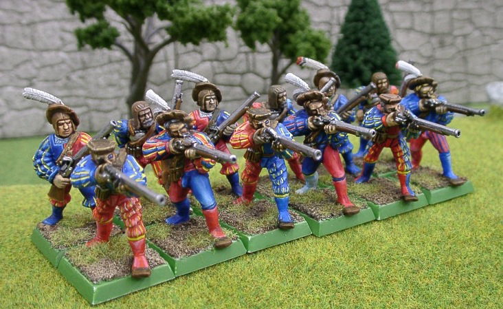 | 有機溶剤さんのコメント 初にペイントしたのがこの部隊です、写真では12体ですが、実際には16体ペイントしてあります。 このころは黄色の使い方が控えめですね。 前列のハンドガンナーは、一体成型で平らになっている部分(左肩の付け根から顔にかけて)を、 ピンバイス、アートナイフ等で彫り直してあります。面倒ですが、お勧めのディテールアップ法です。 Rmanのコメント エンパイア作成初期の作品とのことですが、それでもやっぱりかっこいい!。 確かに黄色が若干地味目ですが、アクセントとしては充分な気もします。 銃口に穴をあけるなどの一手間をかけるとまたミニチュアに愛着が増すものですね。 |